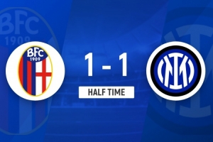 体育资讯12月20日讯 意大利超级杯半决赛,博洛尼亚对阵国际米兰,比赛在沙特国王大学体育场进行。上半场,小图拉姆2分钟闪击建功,比塞克手球送点,奥尔索里尼点射建功,贝纳德斯基伤退。半场战罢,国米1-1博洛尼亚。