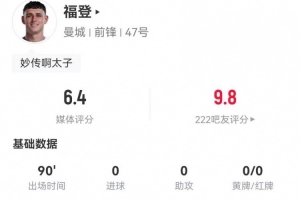 本篇关于《太累?福登本场2射1正+2关键传球 7对抗2成功+16丢失球权 仅6.4分》的整理已完成,若想继续了解赛事动态,可浏览本站更多专题。