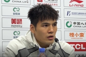 陈国豪:其实就是打完这几天的比赛,自己想的也很多,因为确实前几场比赛打的不是在自己的节奏上,也有感觉有点压抑吧。早上开完会我也跟主教练有沟通过,他跟我提了很多建议,然后让我保持自信,所以在这场比赛中,我希望就是能有所发挥吧。
