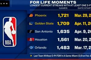 随着官方及媒体不断公布新信息,“球队连续有3分进账场次:太阳1721场第一 勇士1709场第二”成为值得追踪的焦点事件。相关内容如下: