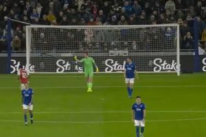 在约克雷斯罚进点球后,埃弗顿门将皮克福德很懊恼。捡起皮球怒踢一脚险些踢到萨卡,随后还朝阿森纳球员比中指。