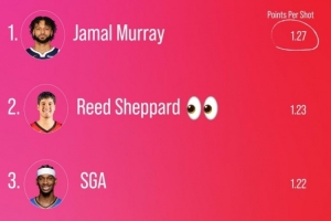 近期大量体育迷都在关注“平均每次跳投得分:穆雷1.27分第1 谢泼德1.23分第2 SGA1.22分第3”,并对相关情况展开热议。下面是汇总后的主要内容: