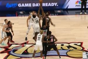 76人这边恩比德出战跳球!赛季初期76人一度让乌布雷去参加跳球!