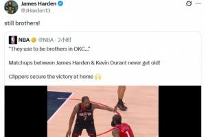 以上内容便是关于《NBA官推称哈登与杜兰特在OKC曾是兄弟 哈登转发:现在仍是兄弟!》的完整梳理,希望为您提供清晰、实用的参考,更多详情欢迎持续关注本站。