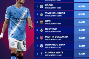 文章到这里就结束了,以上是《今年球员身价下跌榜:福登跌6000万欧居首,罗德里跌5500万欧次之》的全部重点,希望您在阅读后能对事件有更全面的认识。