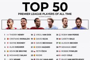 以上是本次关于《你认可吗外媒评英超历史50大球星:亨利第1 C罗第2 萨拉赫第6》的重点总结,更多内容我们将持续补充,敬请期待。