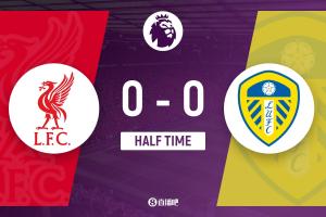 上半场补时2分钟,利物浦0-0利兹联。