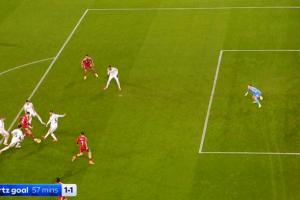 维尔茨第57分钟破门,边裁示意越位,VAR介入后判罚进球有效。