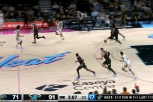 GIF-阿德巴约外线投进三分,热火21-2的高潮领先到20分