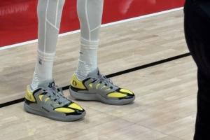 今日11点,火箭客场对阵开拓者,赛前杜兰特热身训练时上脚了KD18俄勒冈配色。