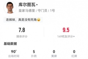 以上便是有关《库尔图瓦本场5扑救+22丢失球权 1解围+2高球拦截 获评7.8分》的全部整理内容,后续若有新信息,我们也将及时补充发布。