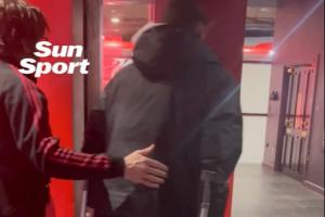 英超第21轮,阿森纳主场0比0战平利物浦。第93分钟,布拉德利解围后受伤倒地,赛后球员拄拐离场。