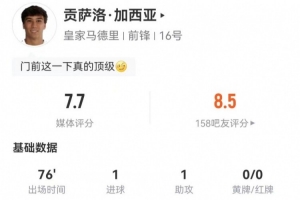 近期大量体育迷都在关注“贡萨洛本场2射2正进1球+1失良机 1助攻+6对抗1成功 获评7.7分”,并对相关情况展开热议。下面是汇总后的主要内容: