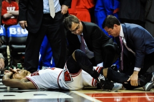 2012年季后赛首轮G1,公牛对阵76人,德里克·罗斯在比赛最后时刻突破时受伤,在跳起后落地时遭遇了左膝十字韧带撕裂,罗斯也因此赛季报销并缺席了之后的2012-13赛季。