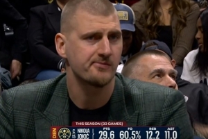 以上就是本文的全部分享,关于《挺淡定!约基奇场边便装观战 嘴里嚼着东西》的更多内容我们将继续跟进。