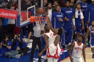 体育资讯01月23日讯 NBA常规赛,76人主场128-122加时战胜火箭,终结对手3连胜。第四节最后时刻出现争议,马克西上篮被杜兰特干扰球,裁判没有吹罚。