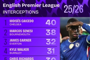 当下不少球迷都在讨论“本赛季英超拦截次数排名:凯塞多40次居首,塞内西38次第二”,许多相关动态也陆续浮现。下面为您呈现本次摘要: