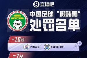 体育资讯01月30日讯 今天上午10点,足球行业“假赌黑”专项整治行动的相关会议今天在北京召开,13家职业俱乐部(中超9队)被罚分,73人终身禁足,3人禁足5年。