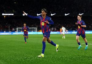 体育资讯2月1日讯 巴萨vs埃尔切的比赛正在进行当中,亚马尔开场破门。