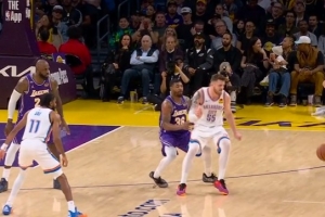 GIF-斯玛特捅球出界 湖人挑战成功