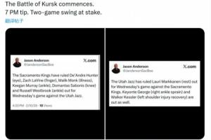 文章到这里就结束了,以上是《摆烂对决!明日爵士VS国王共9人缺阵 媒体人调侃:库尔斯克会战》的全部重点,希望您在阅读后能对事件有更全面的认识。
